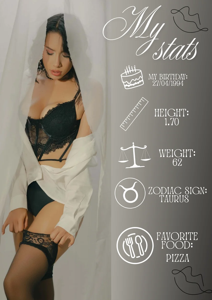 ❤Hello! My name is Pilar. It's a pleasure to greet you. I want you to know a little about me. I am 30 years old, I am a smiling, accommodating girl, I love animals and nature, reading, drawing and meeting new people My favorite foods are pizza and hamburger, I love purple and blue colors Lover of rock and rap as well as helping others. I am submissive in bed, a lover of good sex, anime and video games.❤